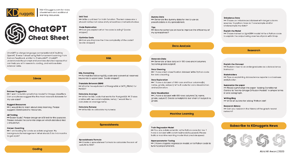 - ChatGPT for Data Science Cheat Sheet by KDnuggets